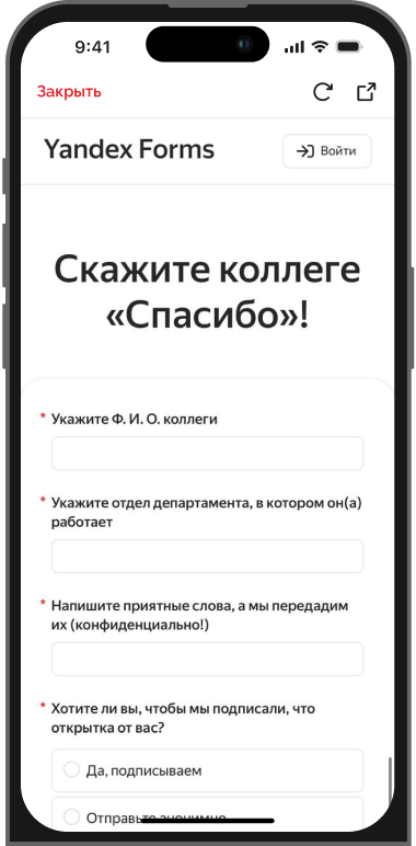 Если хочется кому-то отправить открытку или поздравить с ДР, то из главной страницы можно перейти на форму «Скажи спасибо коллеге»