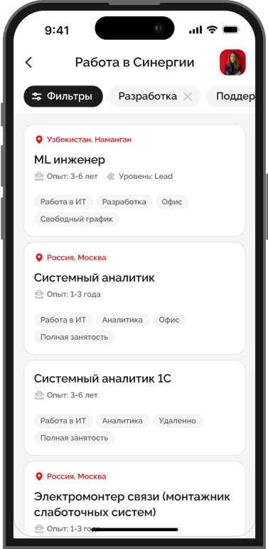 Ищите работу в Синергии, просматривайте информацию о вакансии, ее привелегиях, настраивая фильтр под ваши предпочтения