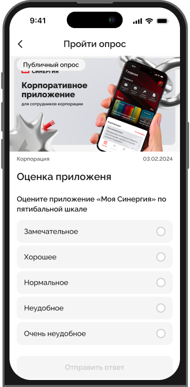 Функционал «Опросы» позволяет легко собирать обратную связь, проводить исследования и улучшать корпоративную жизнь компании. Проходите опросы, чтобы держать руку на пульсе